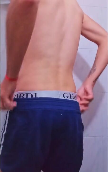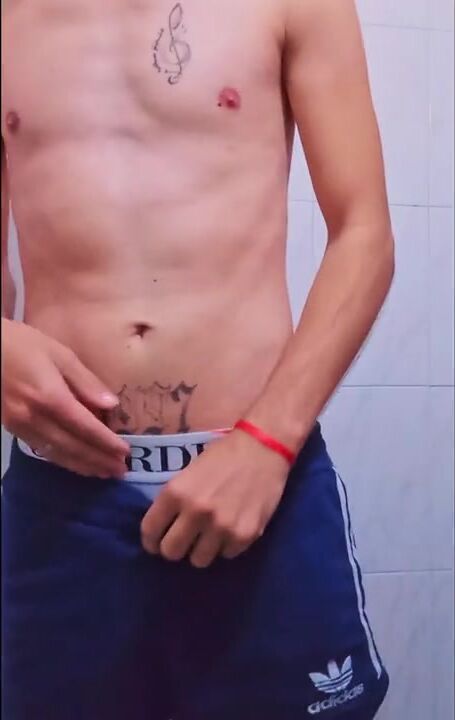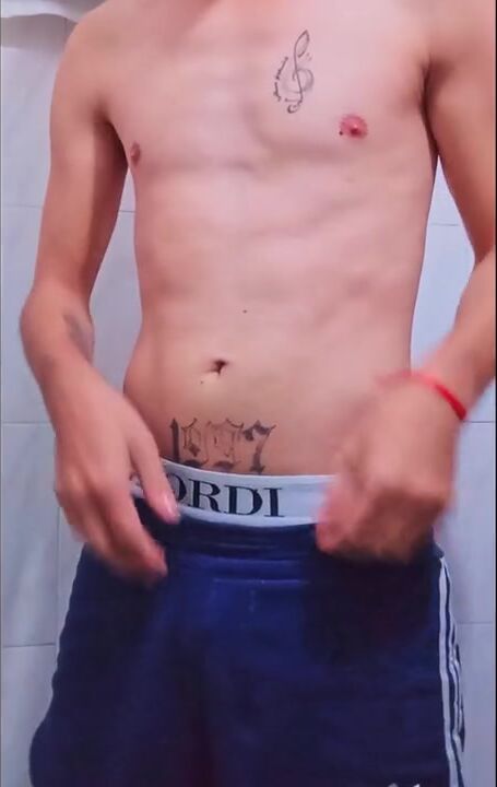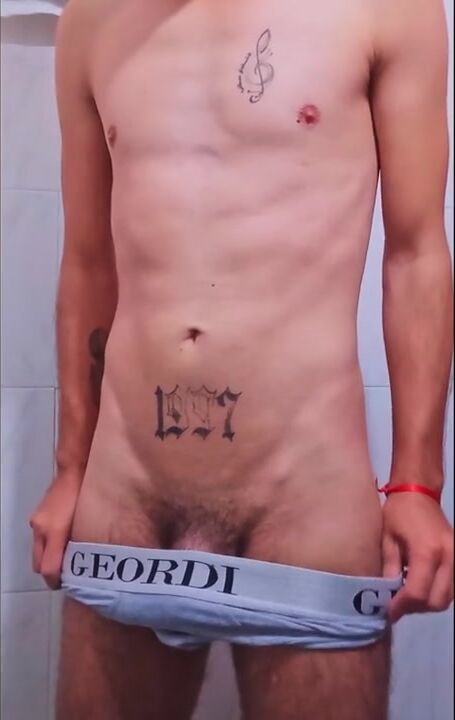 Sexy tattoed skinny latin jock strips on camera dancing reggaeton and jerks off in front of camera X