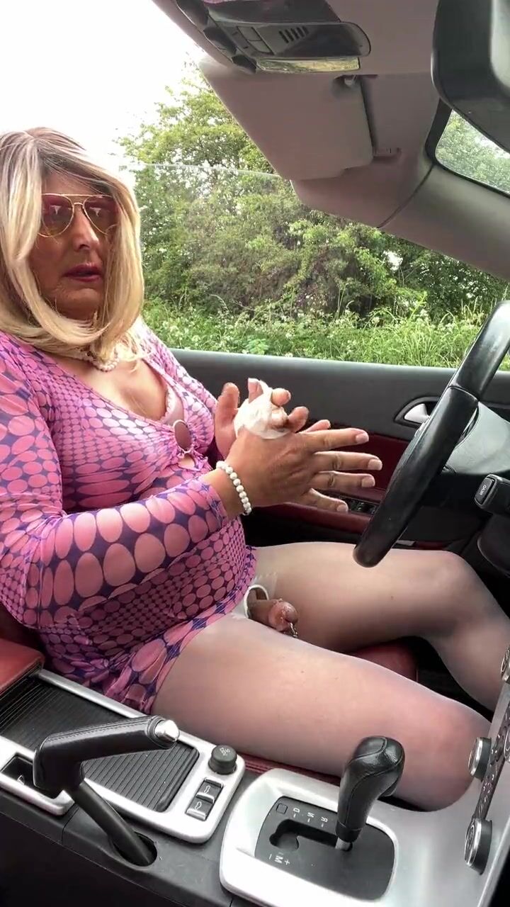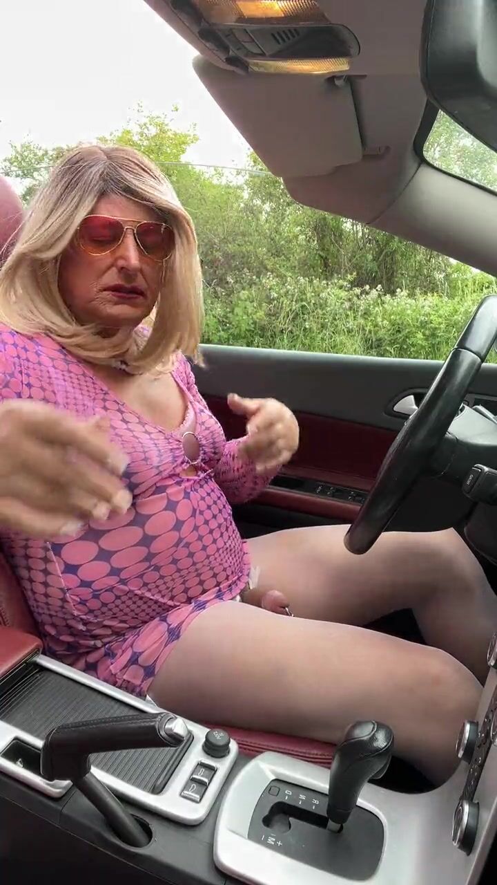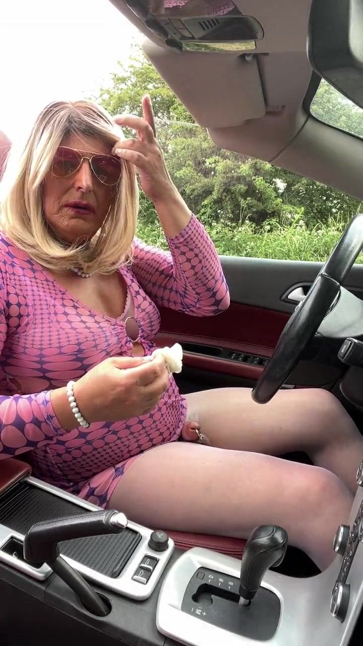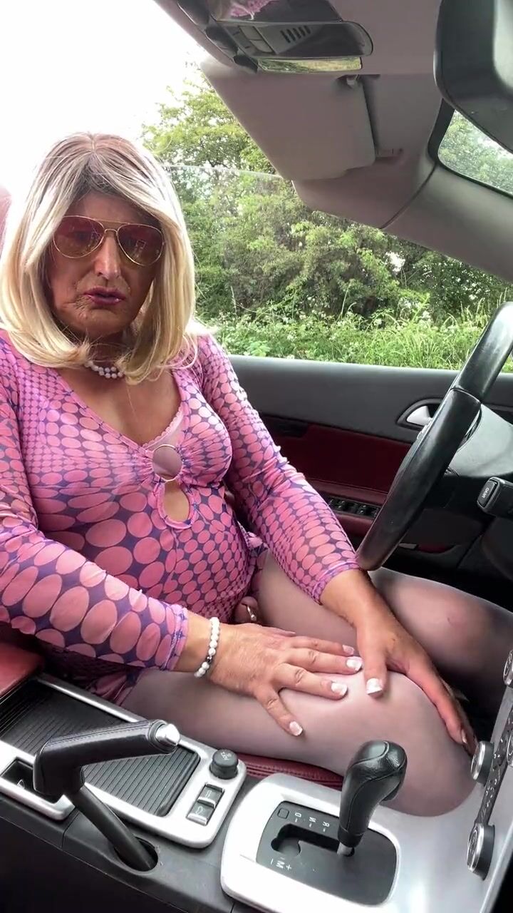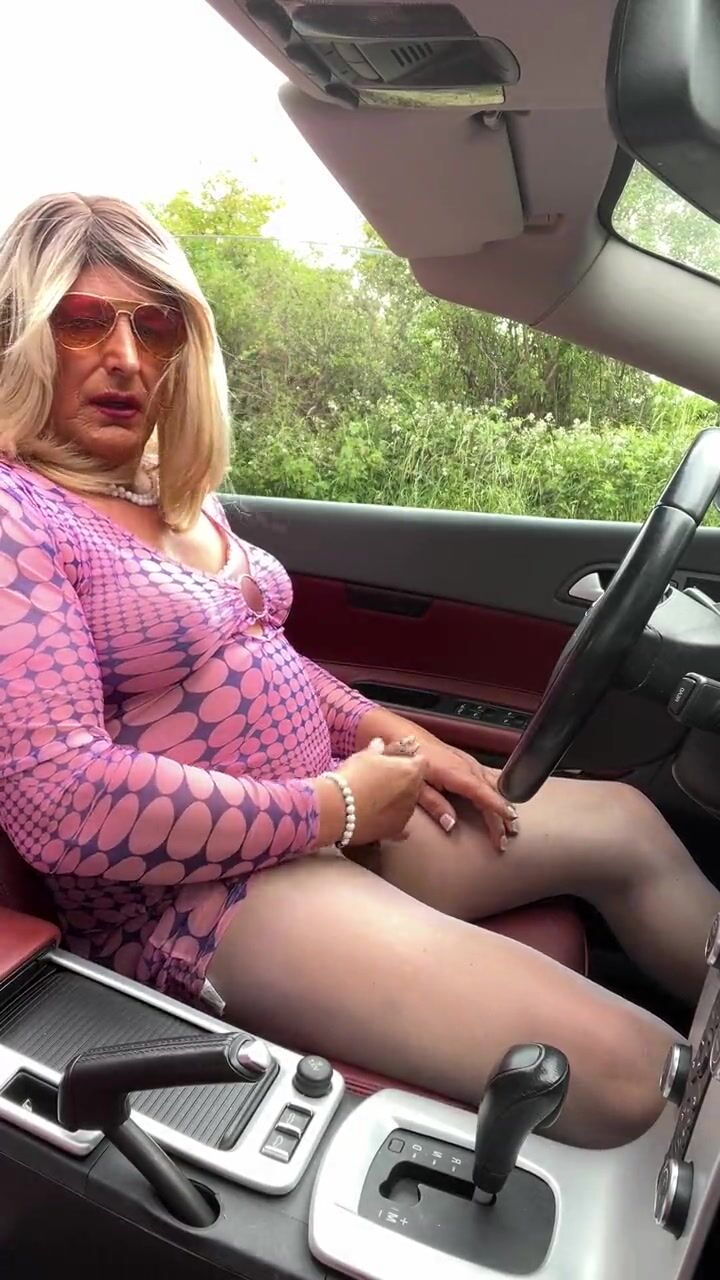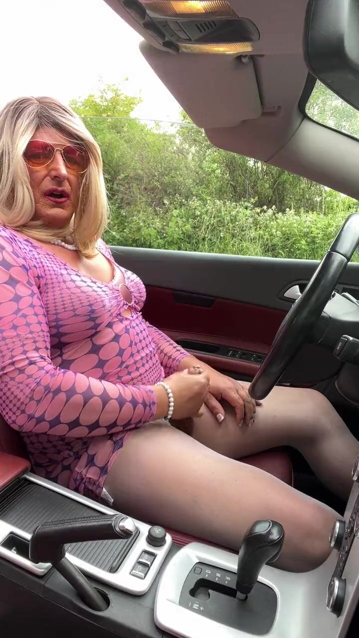 Amateur crossdresser Kellycd2022 sexy milf Saturday afternoon drive masturbating in sexy white pantyhose and heels sissy
