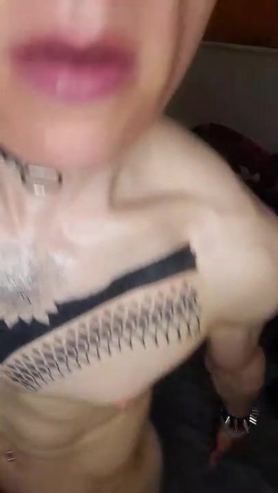 Sexy Trans Shemale Sucks Big Cock and Rides it in Public - Ai Generated