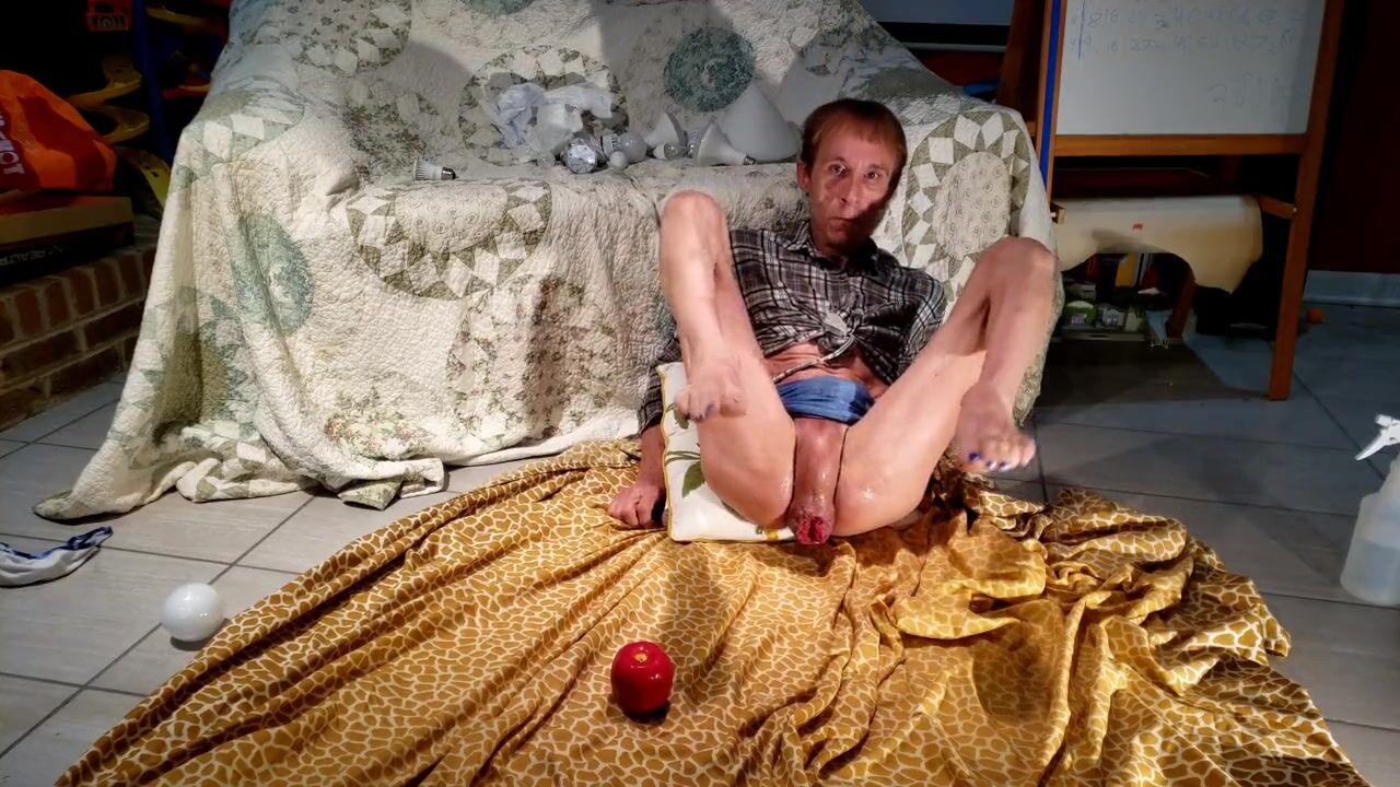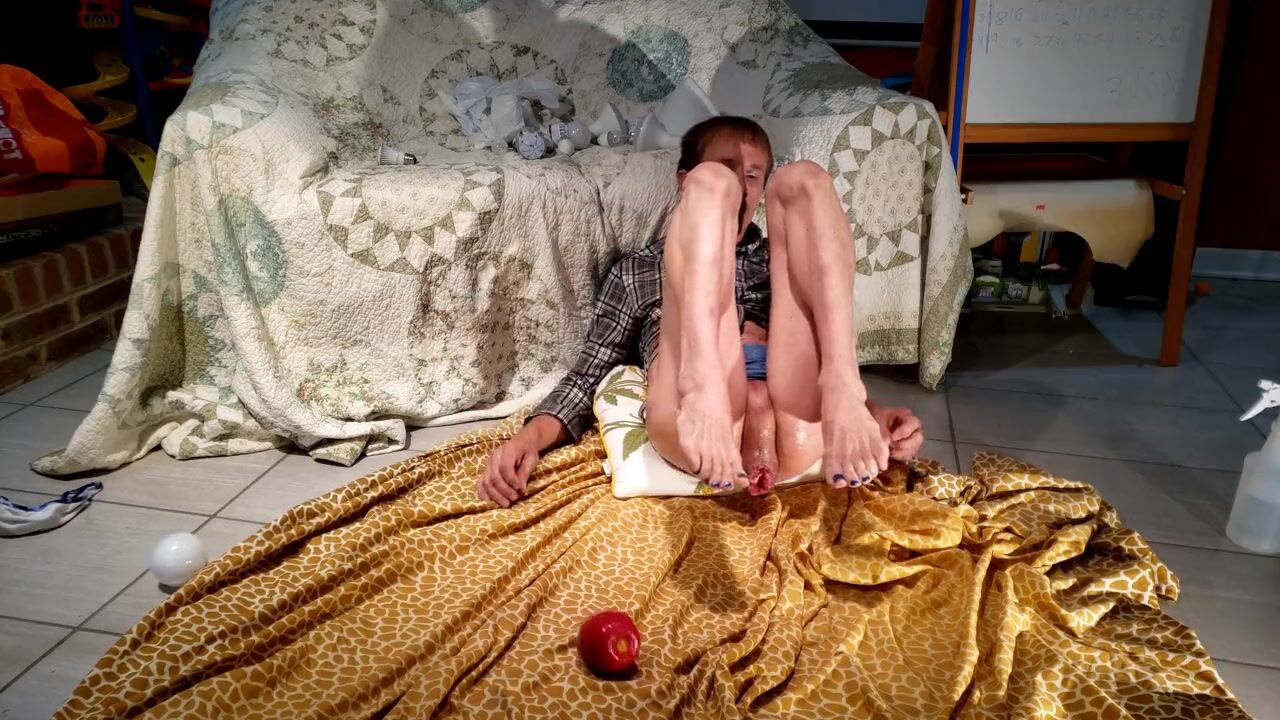 Being weird on the floor with a red apple