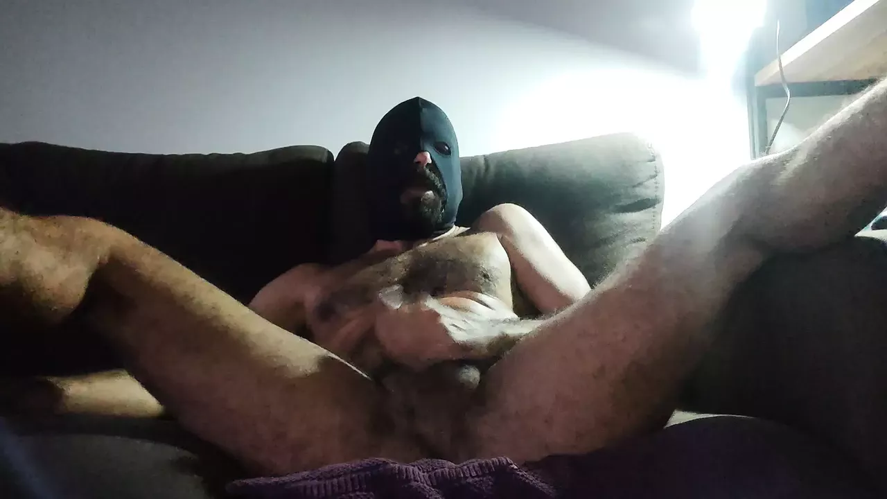 Masked daddy jerking off before going to bed