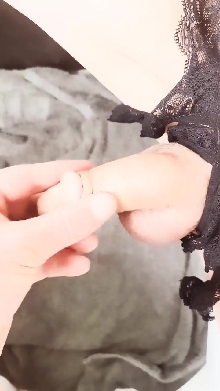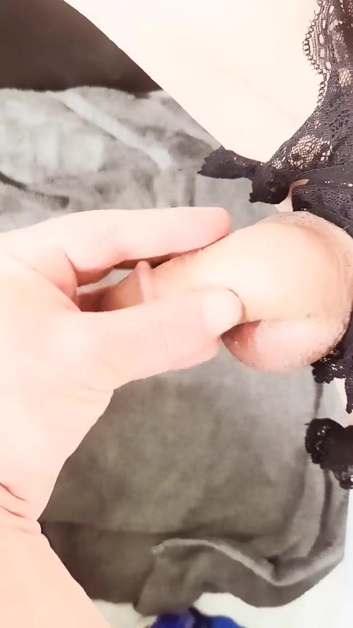Pale small cock femboy stays limp while she rubs her clitty and ruins her own orgasm