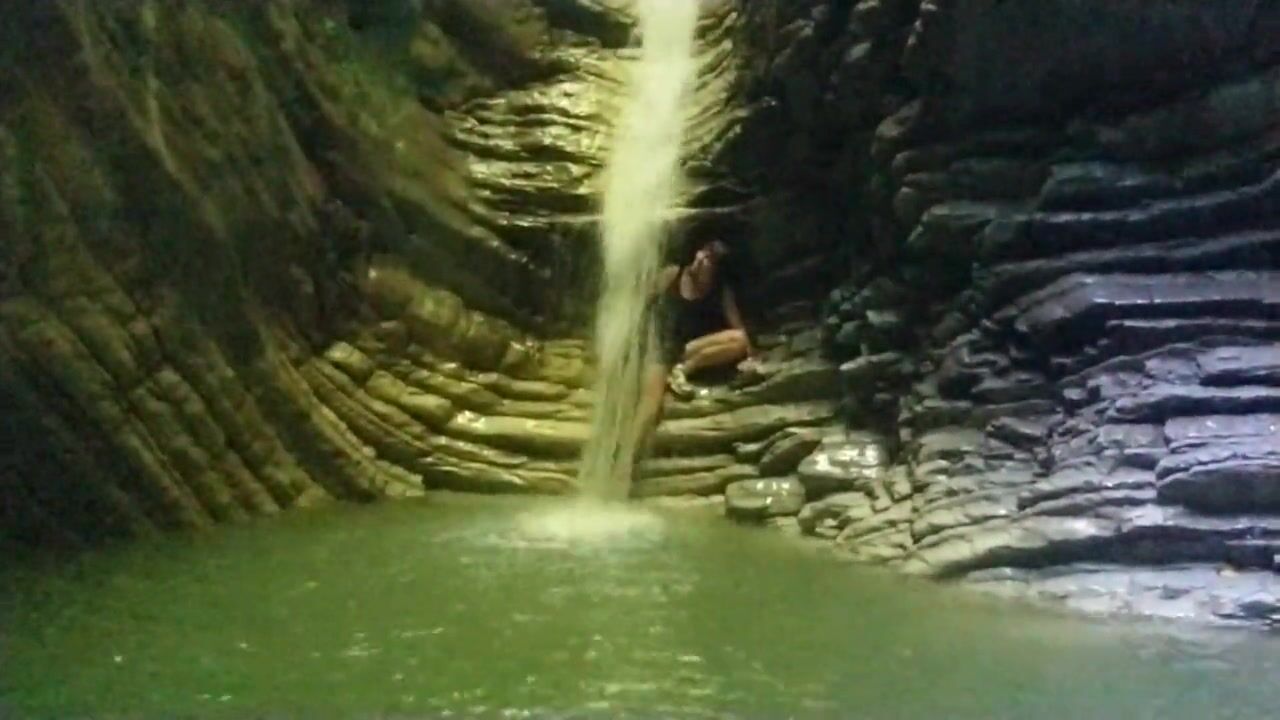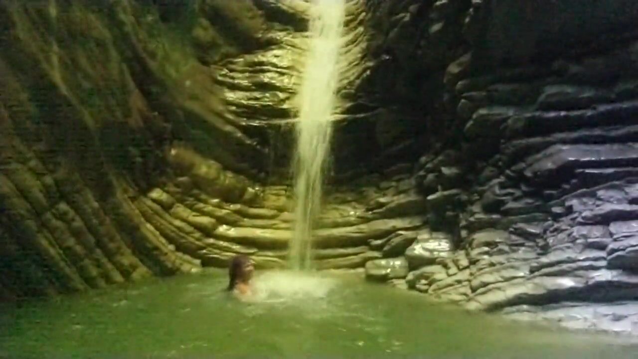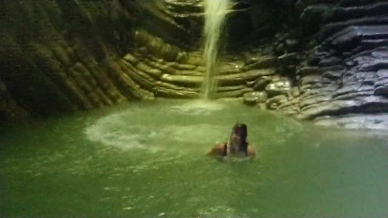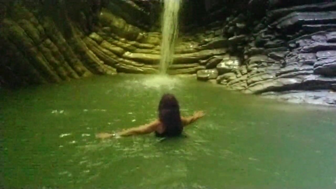 Alexa Cosmic transgirl swimming at waterfall in shirt and t-shirt... 1st waterfall