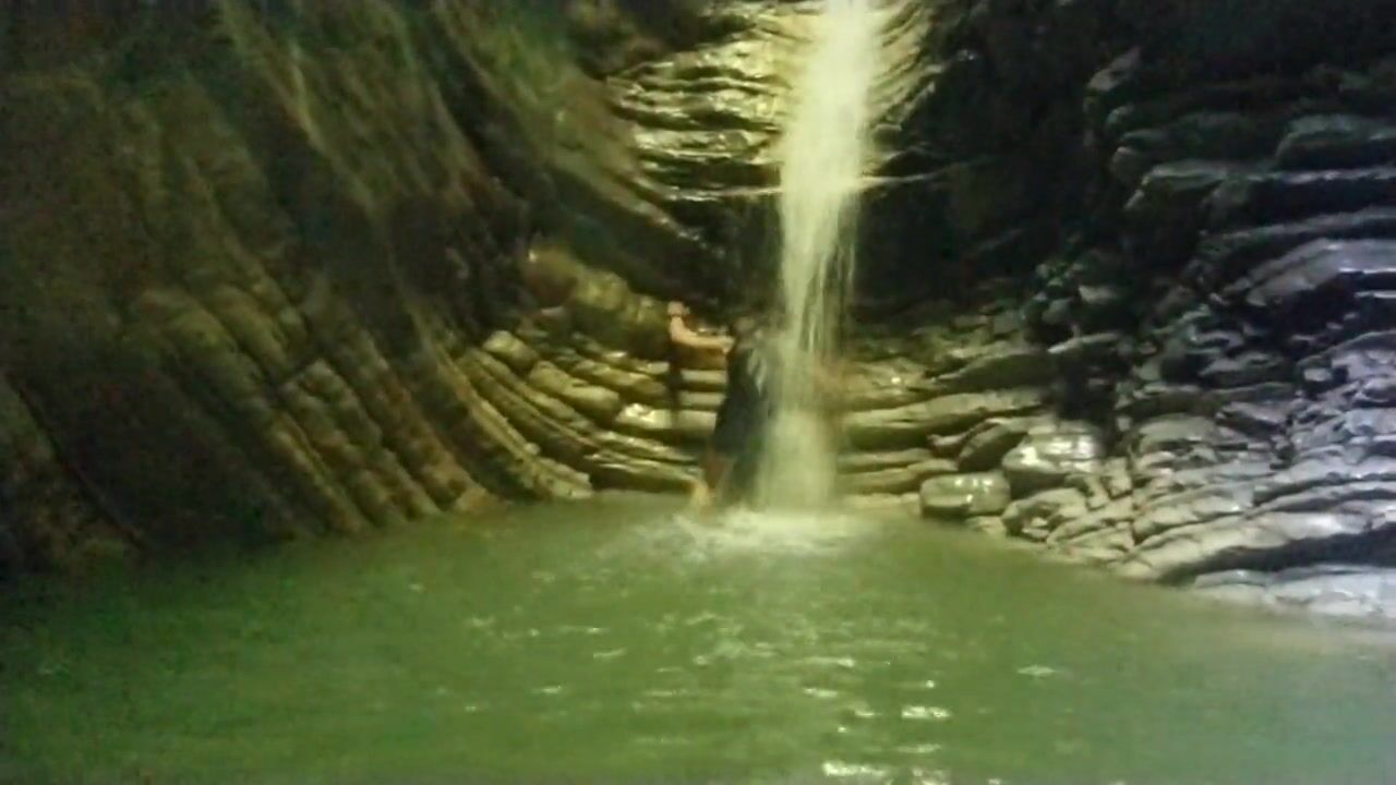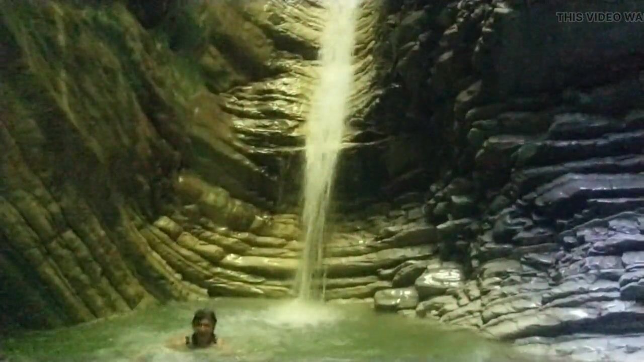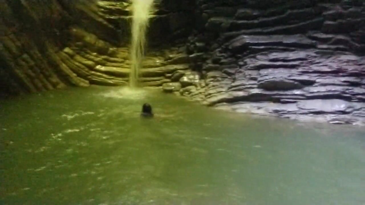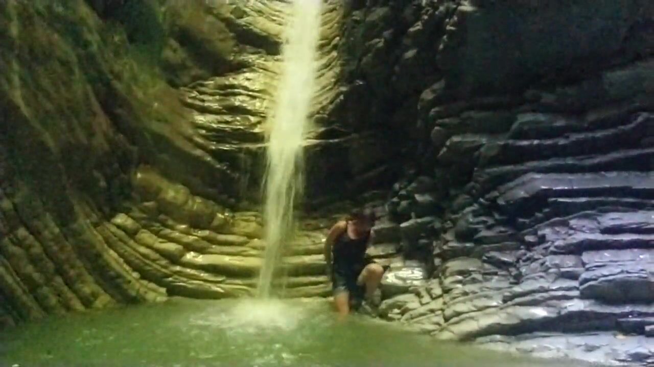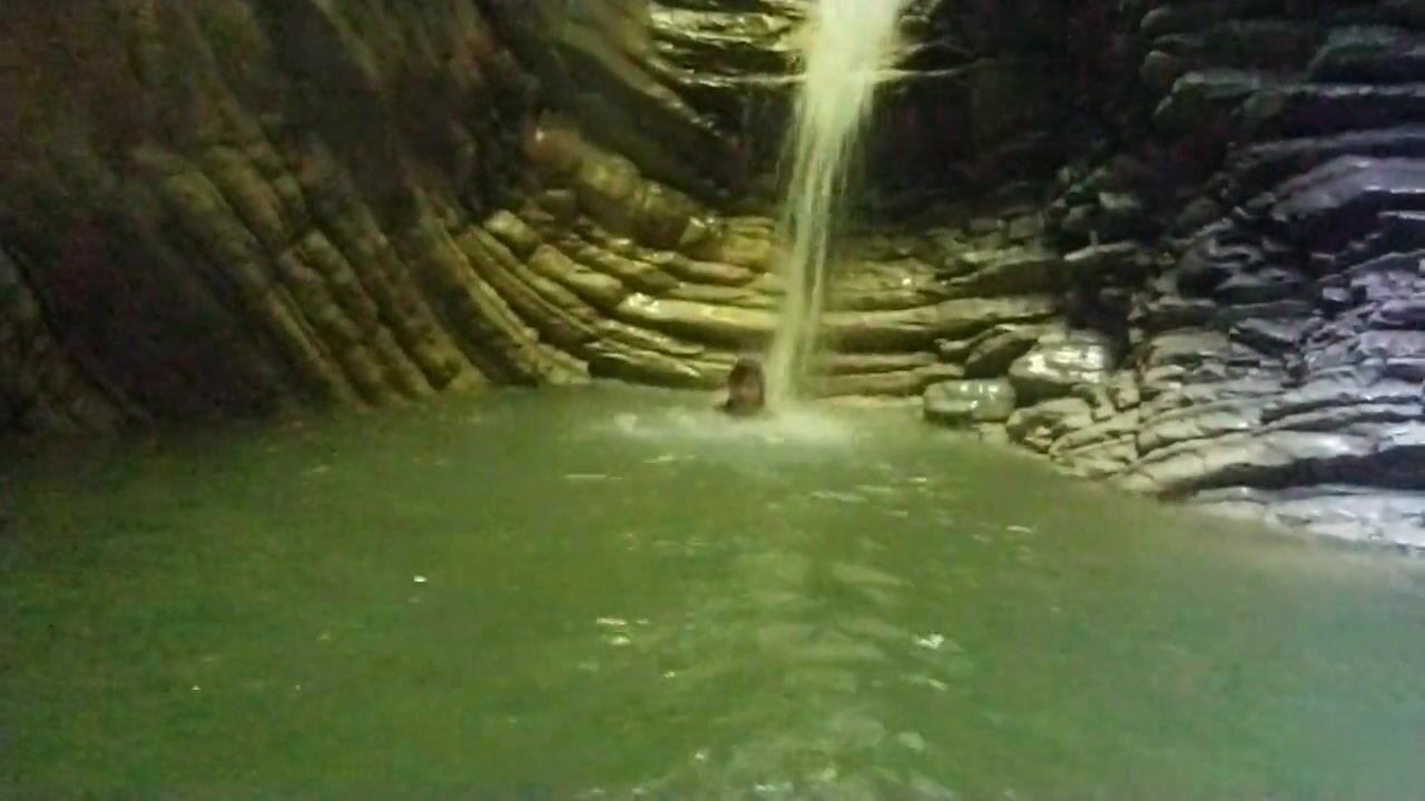 Alexa Cosmic transgirl swimming at waterfall in shirt and t-shirt... 1st waterfall
