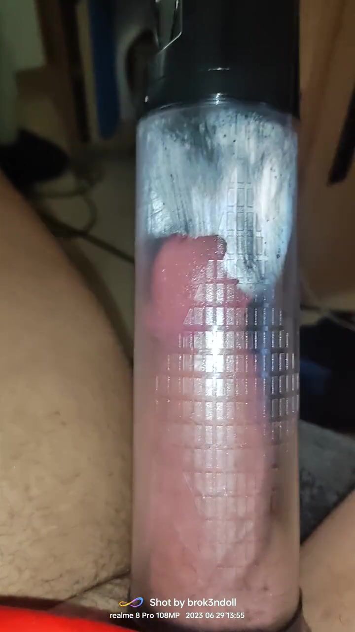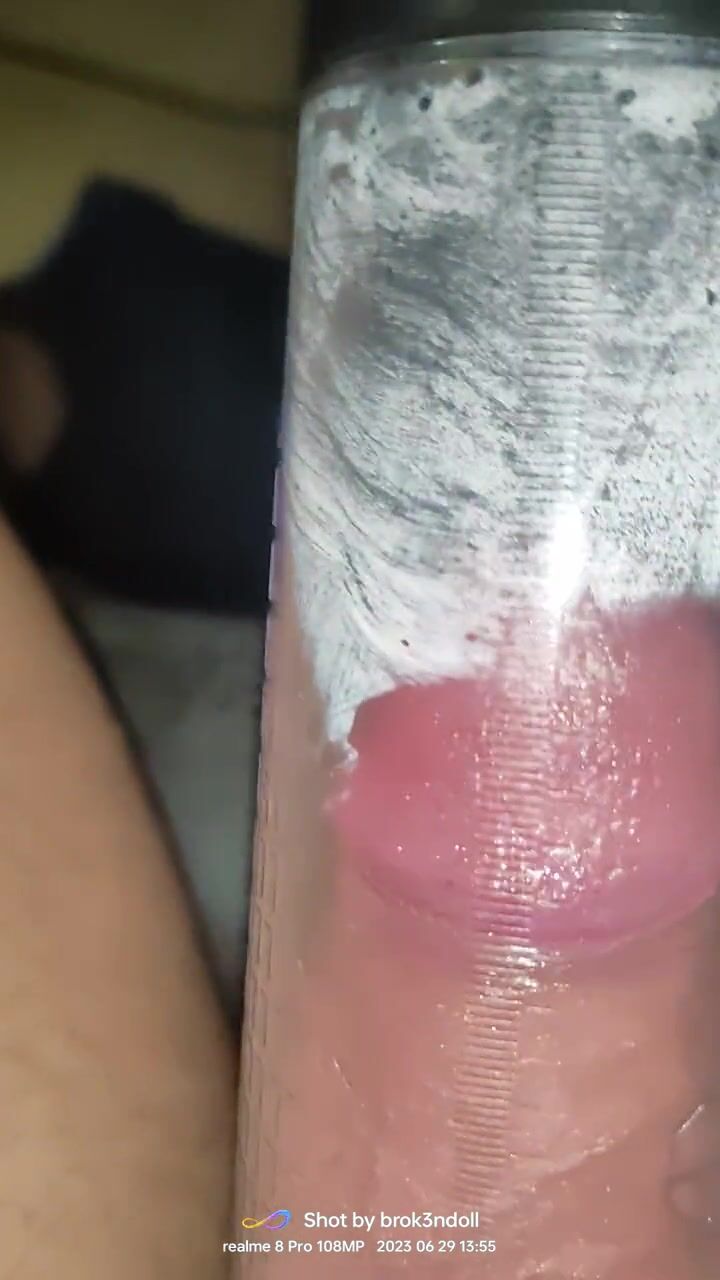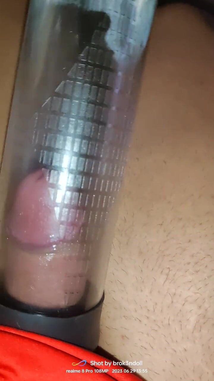 Super thick uncut grows insanely in a penis pump (cumshot on Onlyfans)
