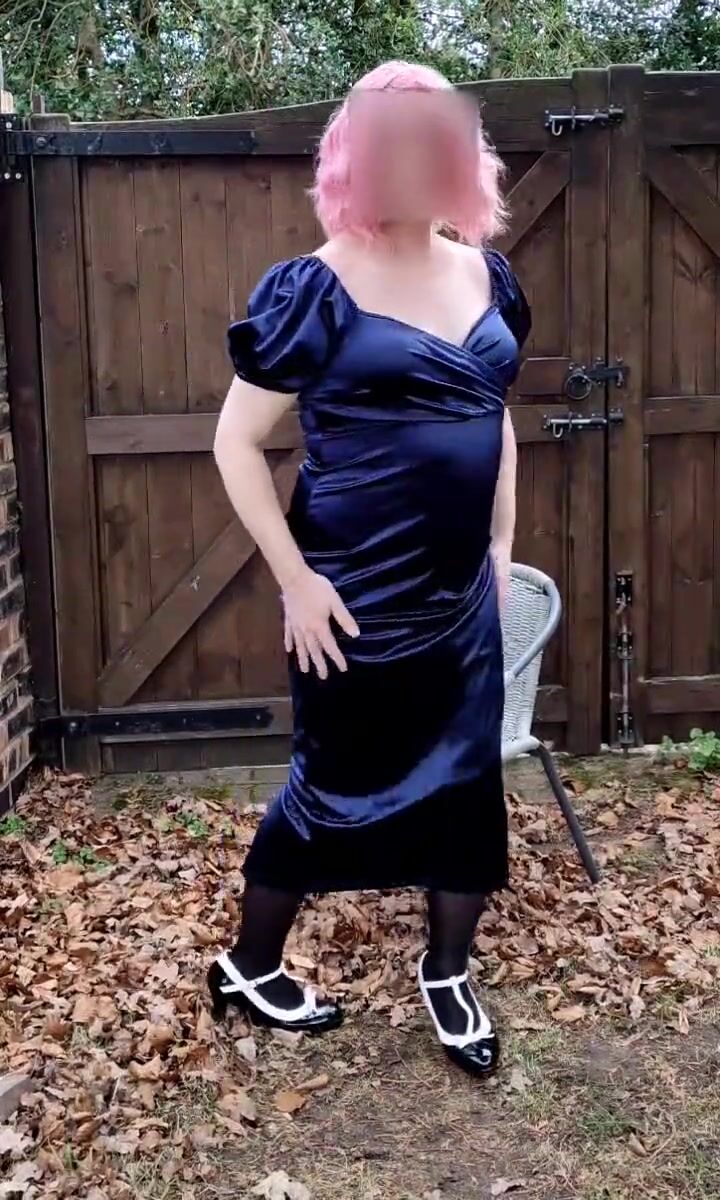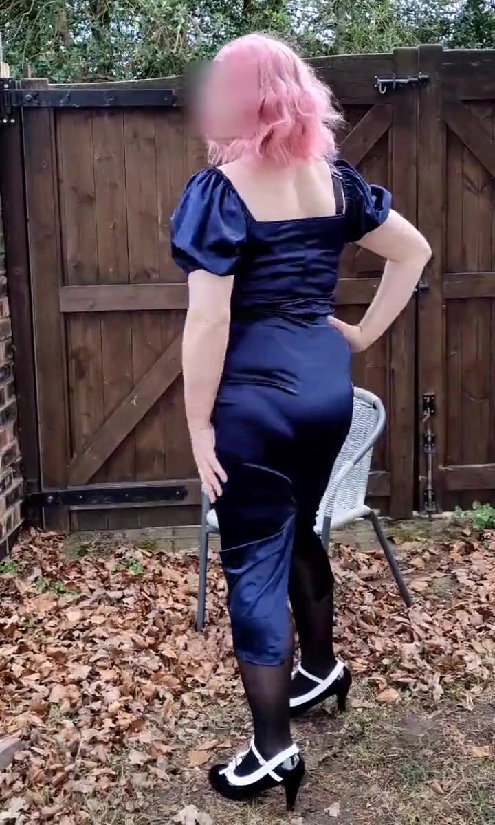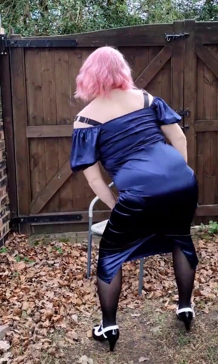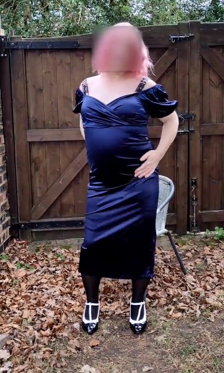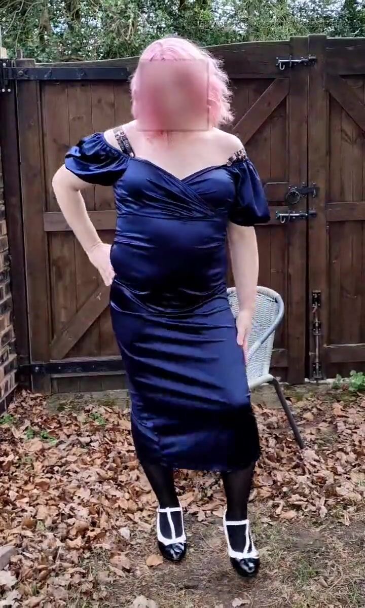 Gorgeous Curvy crossdresser in sexy blue satin ball gown