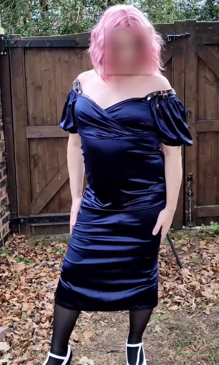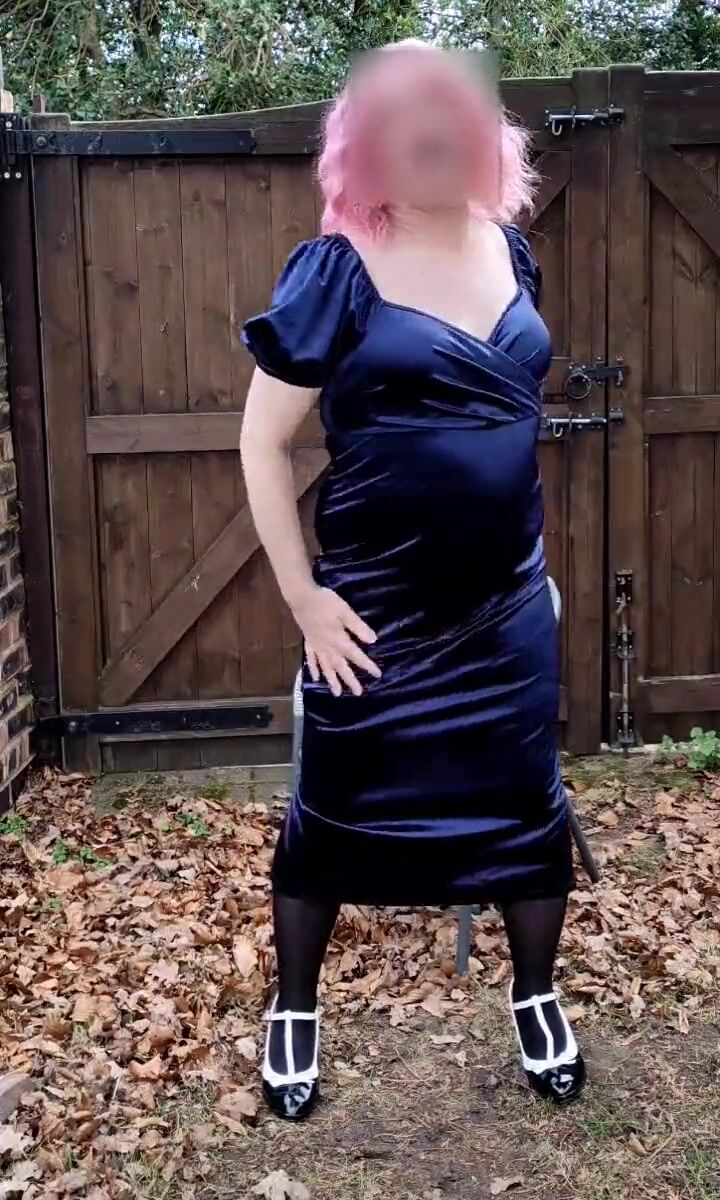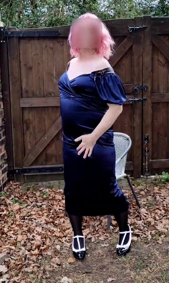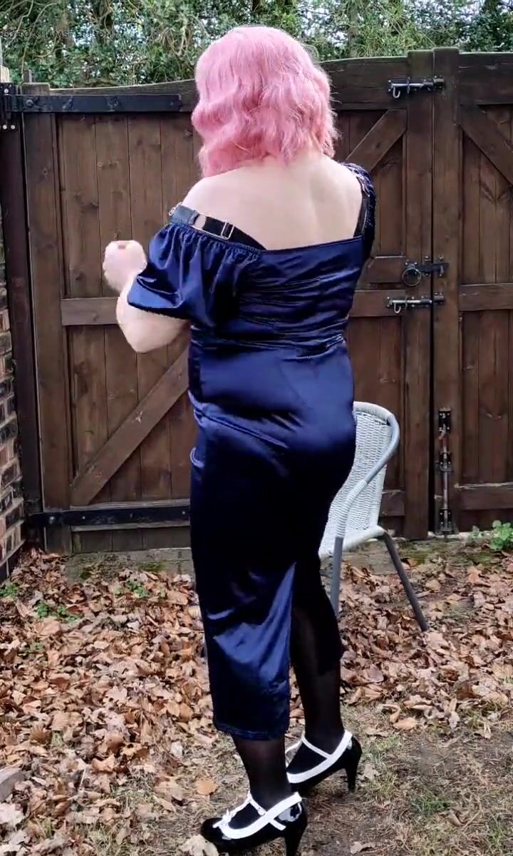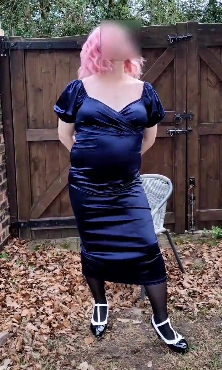 Gorgeous Curvy crossdresser in sexy blue satin ball gown