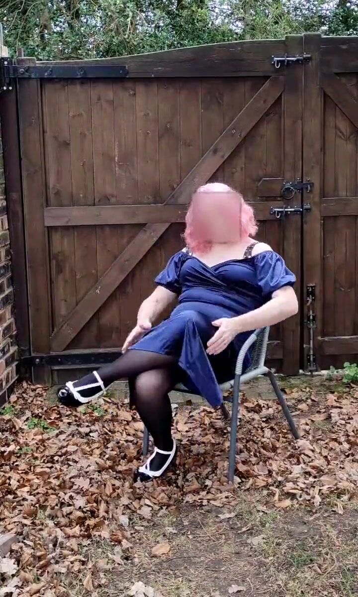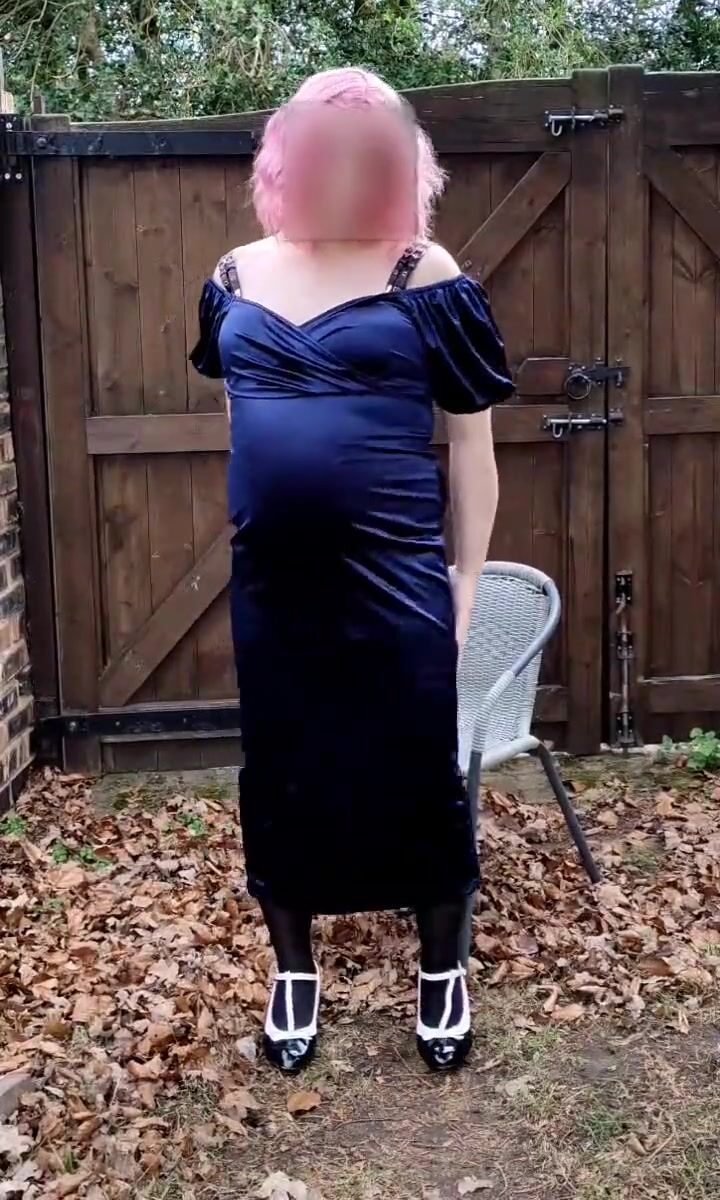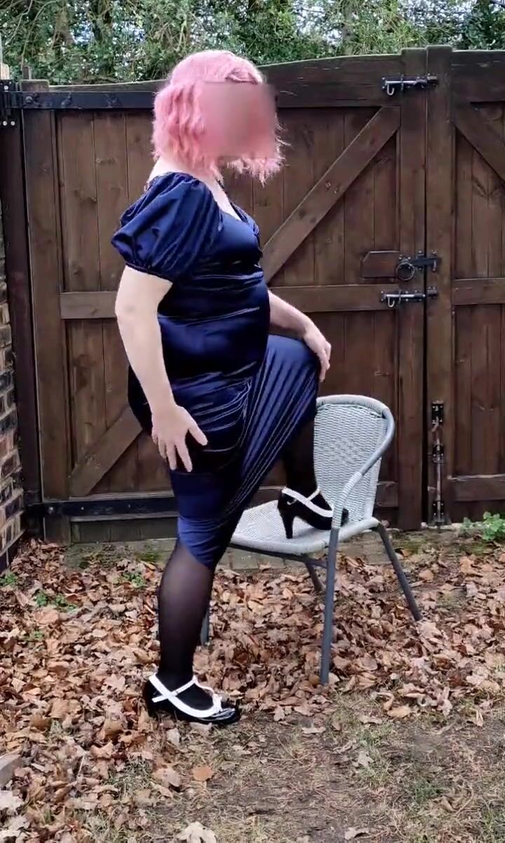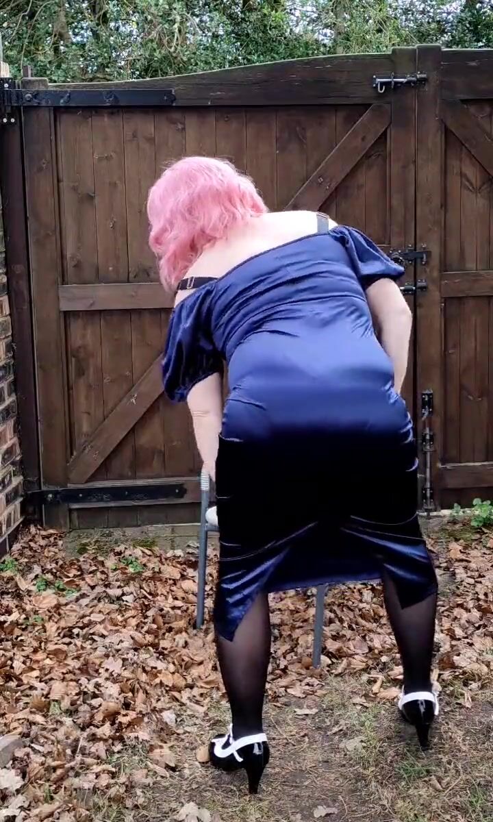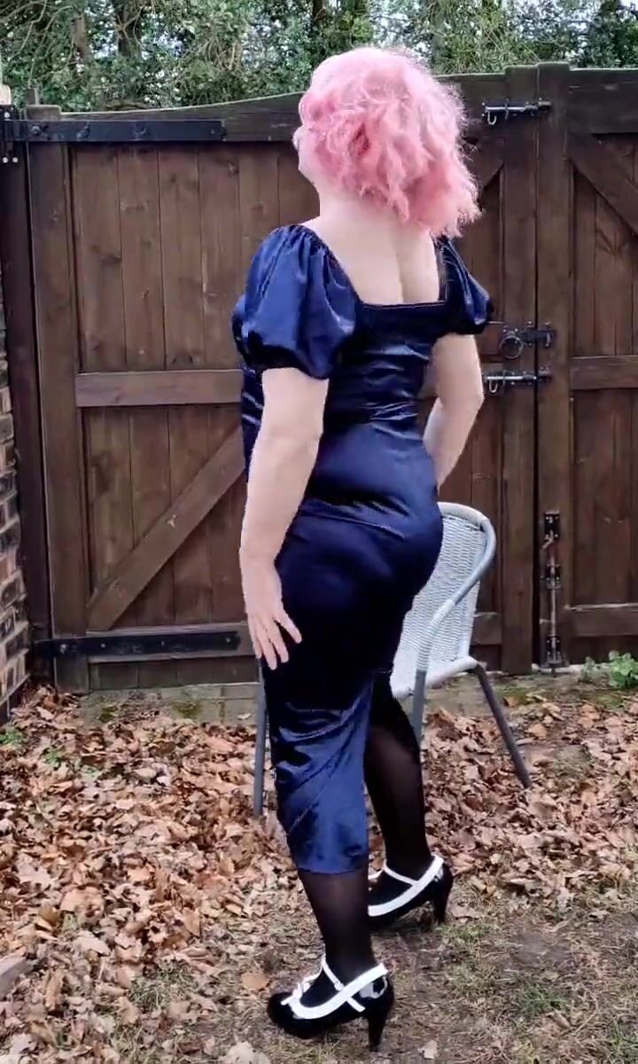 Gorgeous Curvy crossdresser in sexy blue satin ball gown
