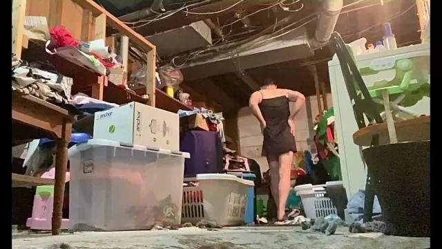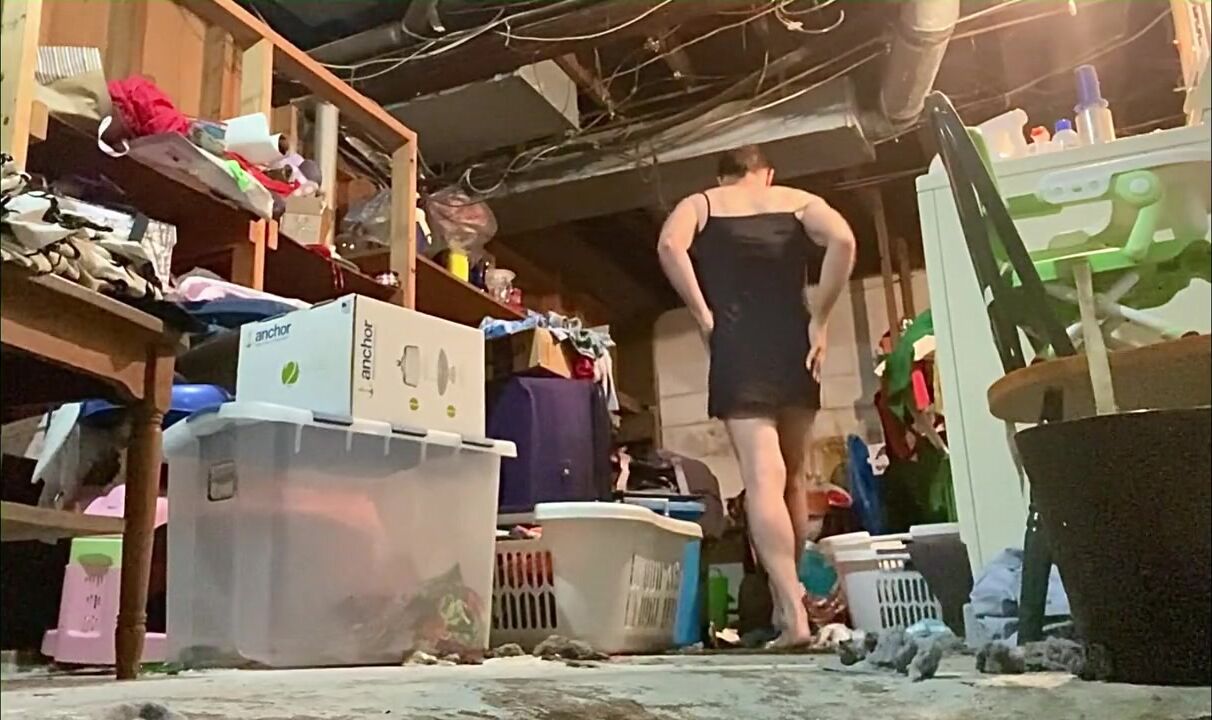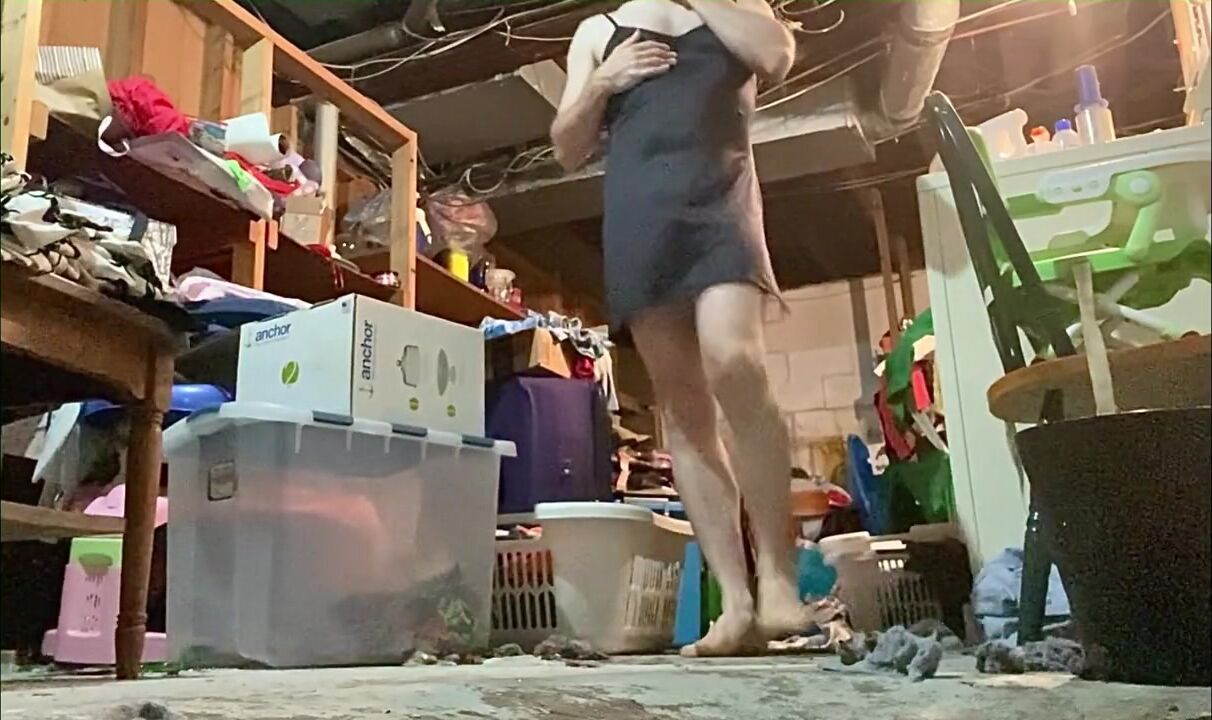 Kneeling and spreading my legs in my slip to pee on the floor
