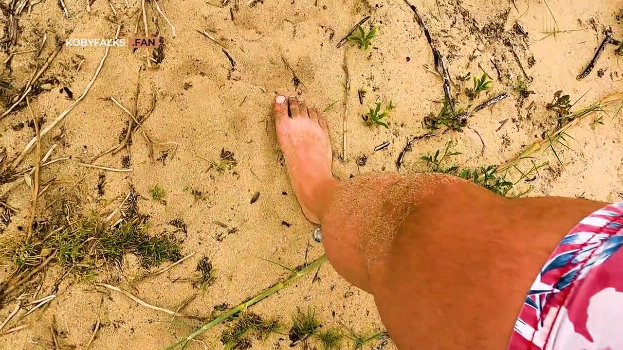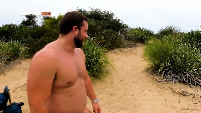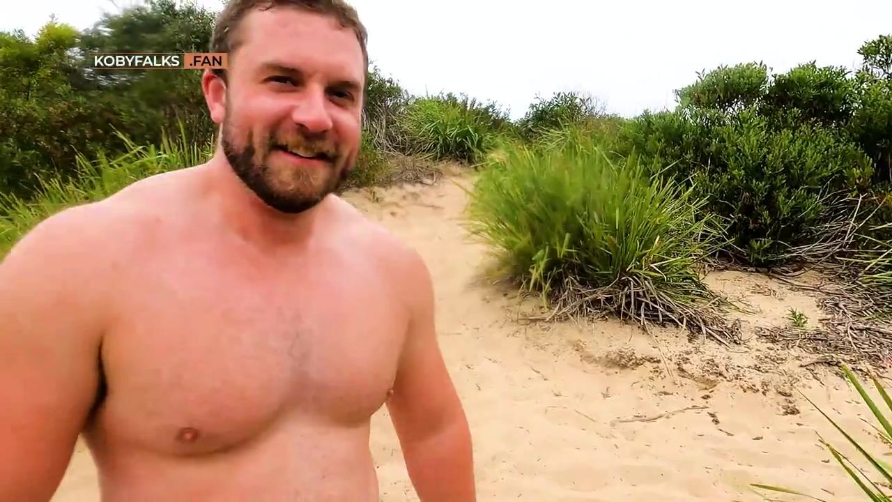 Hunky daddy Koby Falks relaxes at the beach before getting his uncut cock sucked in the dunes