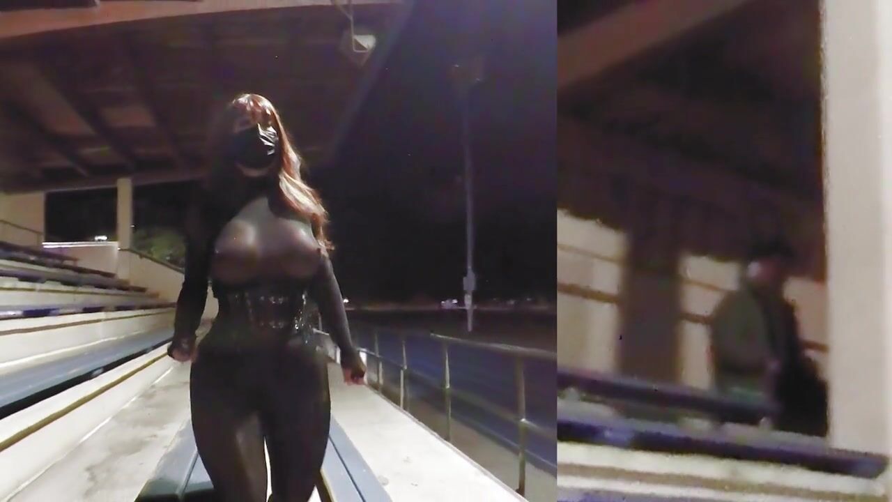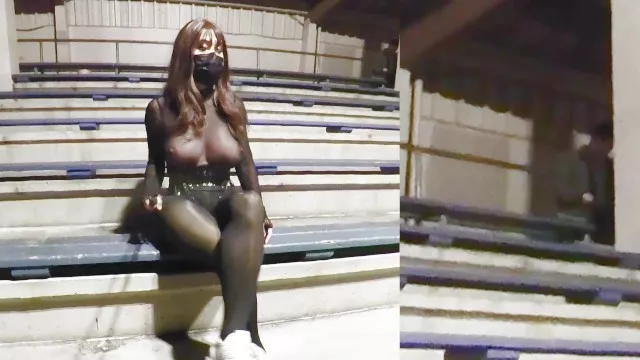 Sexy crossdresser encountered a strange man at the track field